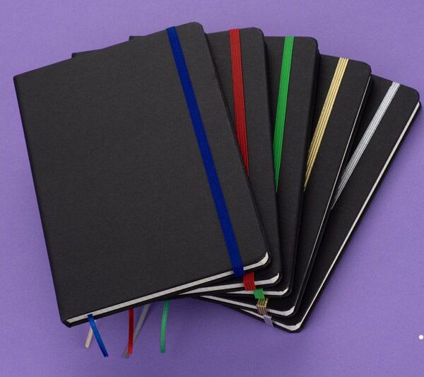 A5 formato užrašų knygutė su RPET viršeliu. Dviejų laidų. 160 perdirbtų baltų liniuotų puslapių (80 lapų).