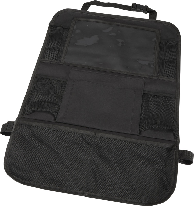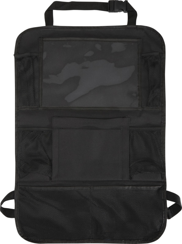 Automobilio galinės sėdynės organizatorius su keliomis tinklinėmis kišenėmis, skirtomis laikyti būtiniausiems daiktams – užkandžiams, žaislams ar buteliams, taip pat su PVC langeliu planšetei. Lengvai pritvirtinamas prie priekinės sėdynės, padeda palaikyti tvarką automobilyje – idealus šeimoms, kelionėms ar kasdieniam naudojimui. Pagaminta iš poliesterio, PVC ir PP plastiko.