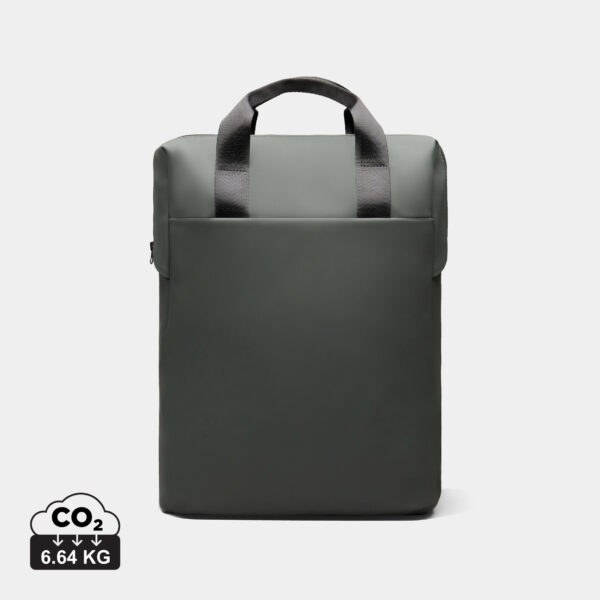 Laminuoto RPET poliesterio pirkinių krepšys su kiauraraščiu ir trumpomis rankenomis, 110 g/m². Su išskirtine RPET etikete.