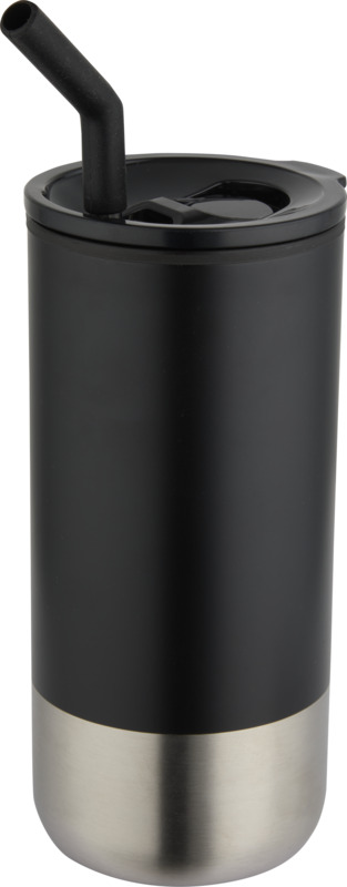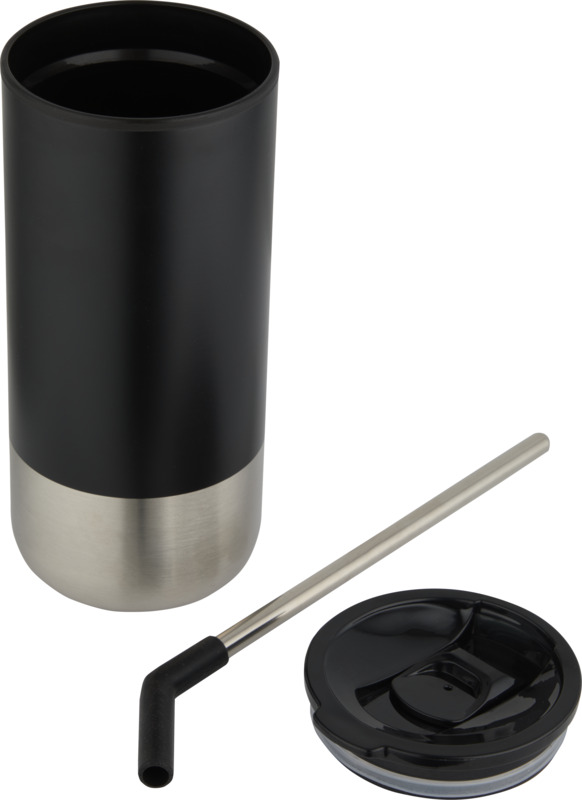Šis dvigubų sienelių izoliacijos termosas komplektuojamas su perdirbto nerūdijančio plieno šiaudeliu, kurio antgalyje – silikoninė dalis patogiam naudojimui. Vidinė sienelė pagaminta iš PP plastiko, o išorinė – iš RCS sertifikuoto perdirbto nerūdijančio plieno. Slankiojantis dangtelis, pagamintas iš PS ir ABS plastiko, kartu su matinio paviršiaus apdaila suteikia termosui stilingą išvaizdą. Talpa: 480 ml. Sudėtis: 90 % perdirbto nerūdijančio plieno, 10 % PP plastiko.